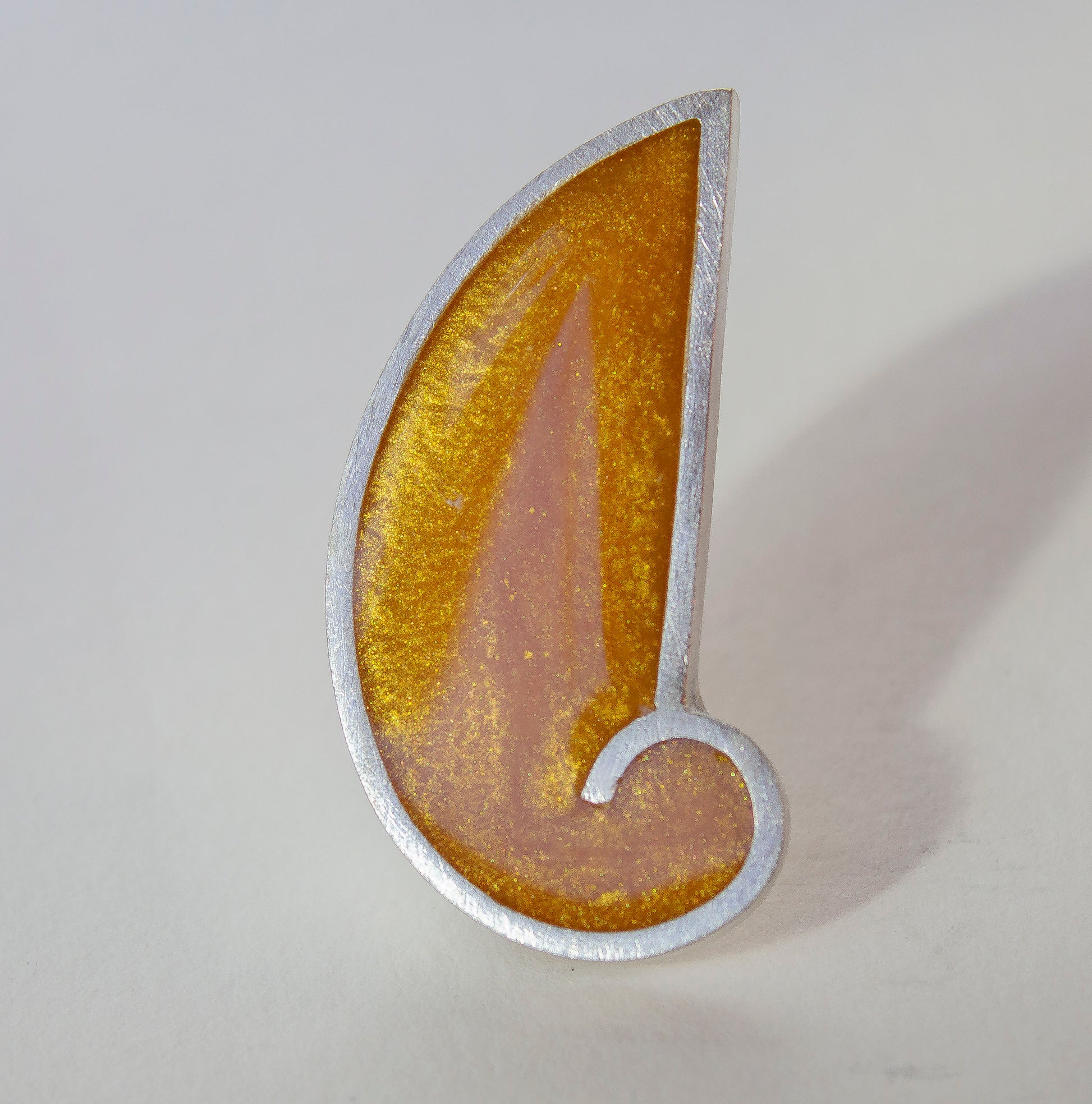 This piece is made of recycled sterling silver. It is a convertible piece and is hallmarked and decorated with glossy dark gold resin but can be any colour of your choice.