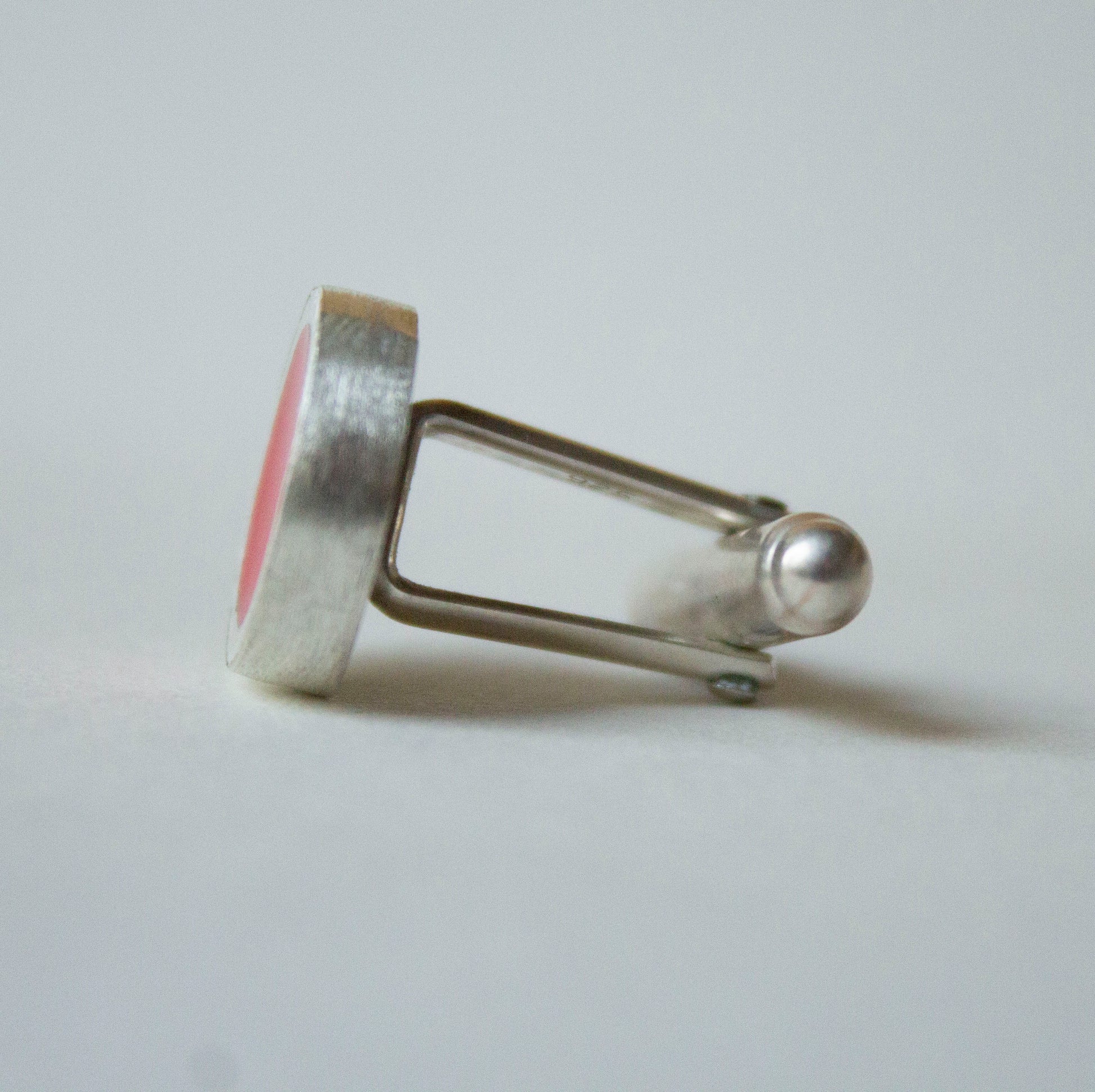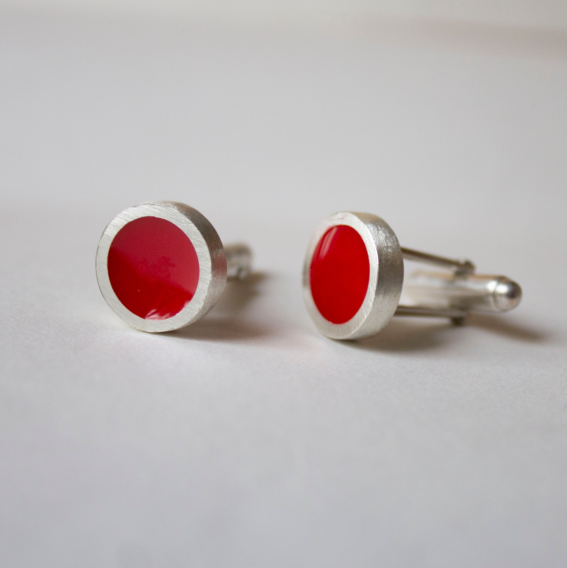 The cufflinks are made of 100% recycled sterling silver, filled 1 of a choice of 16 colours. The Circle diameter is approx 1.3 cms.