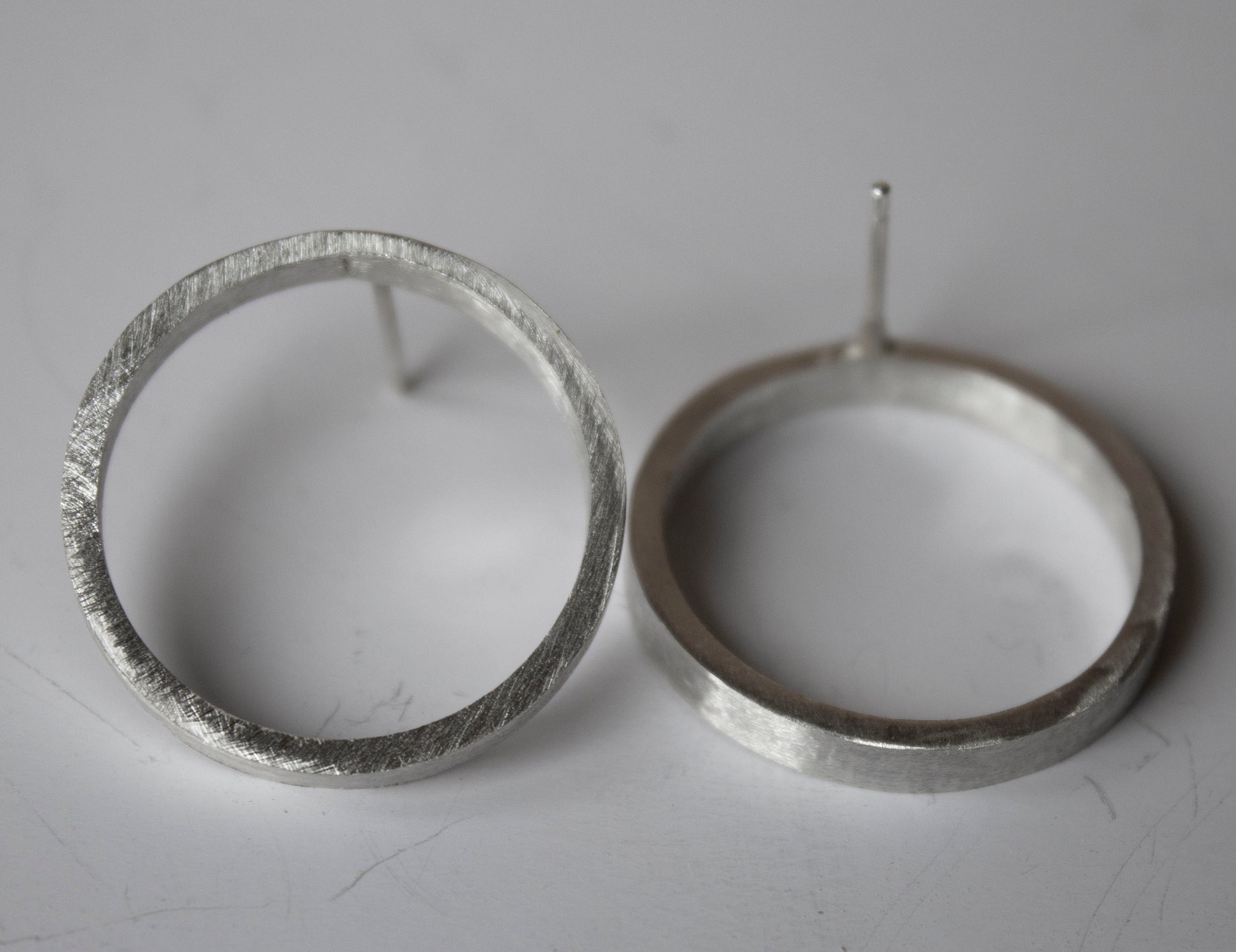 These earrings are made of 100% recycled sterling silver. They are the same size as the Disc drops and studs with resin (2.4 cms in diameter) but are plain matte silver.
