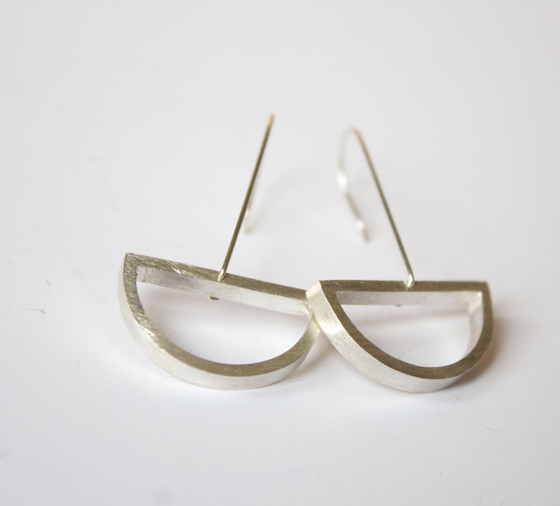 The semi circles are made of recycled sterling silver. They are the same size as the semi-circle drops with resin - approx 2.5 cms wide and 4 cms in total length.