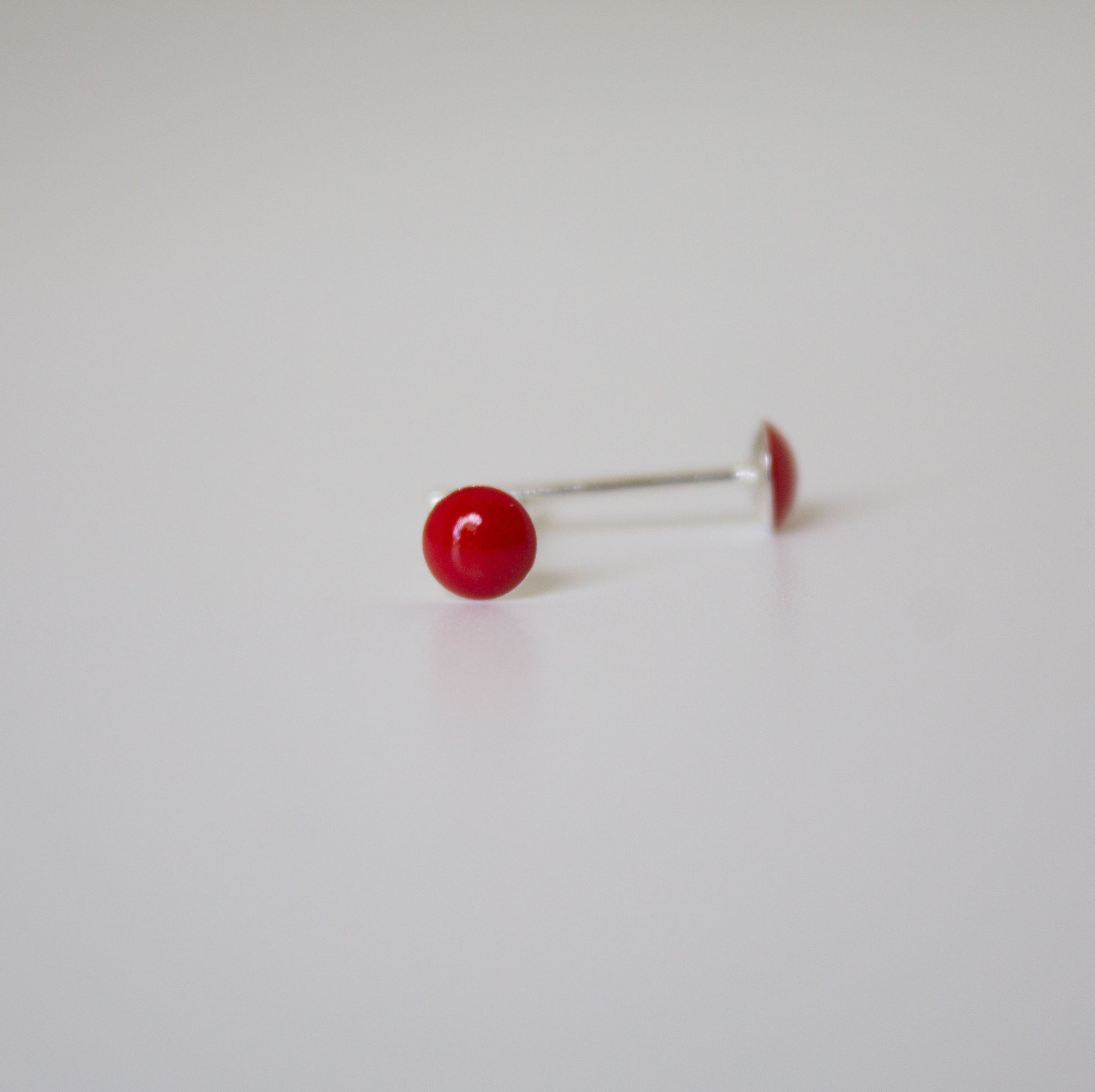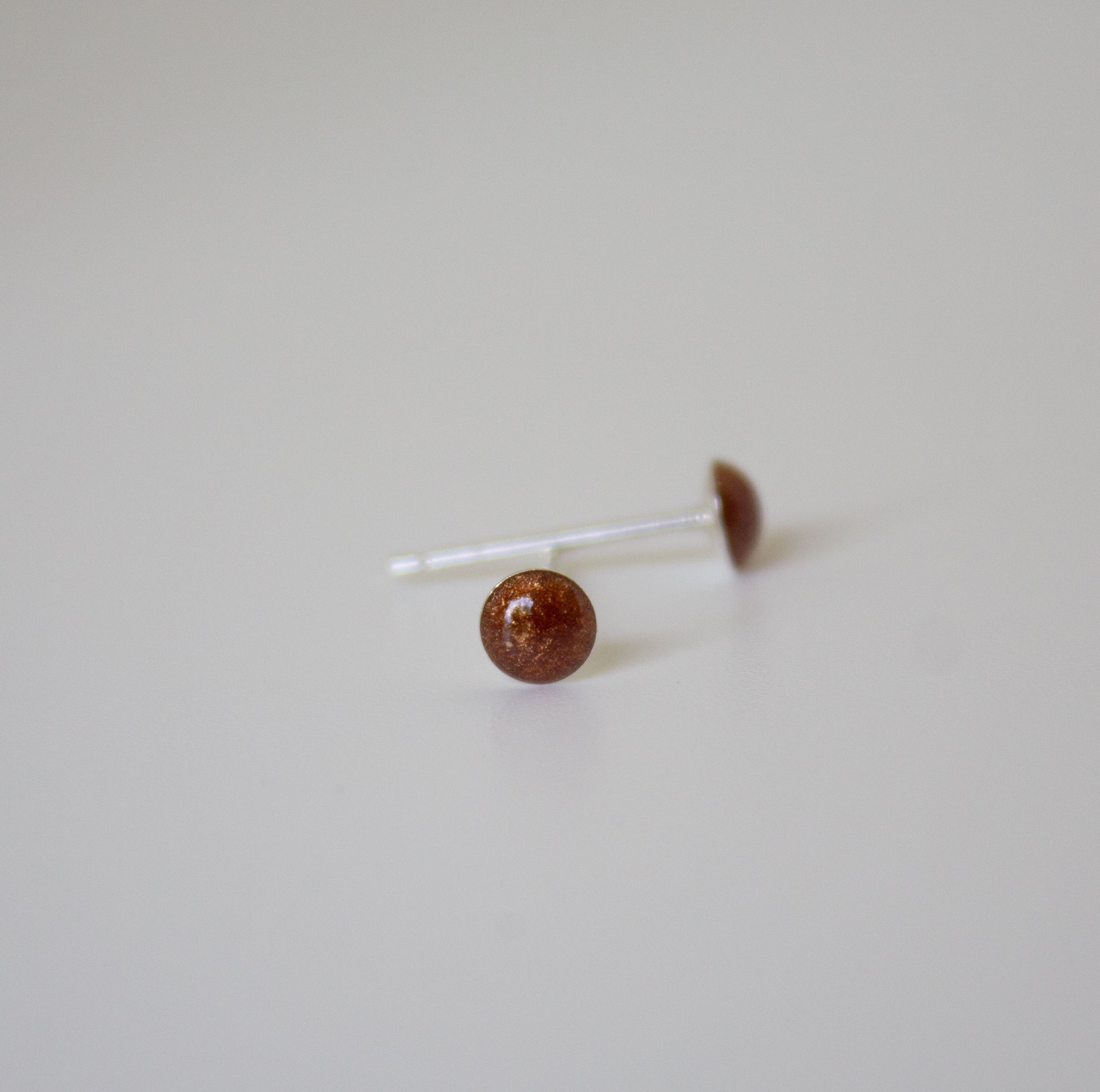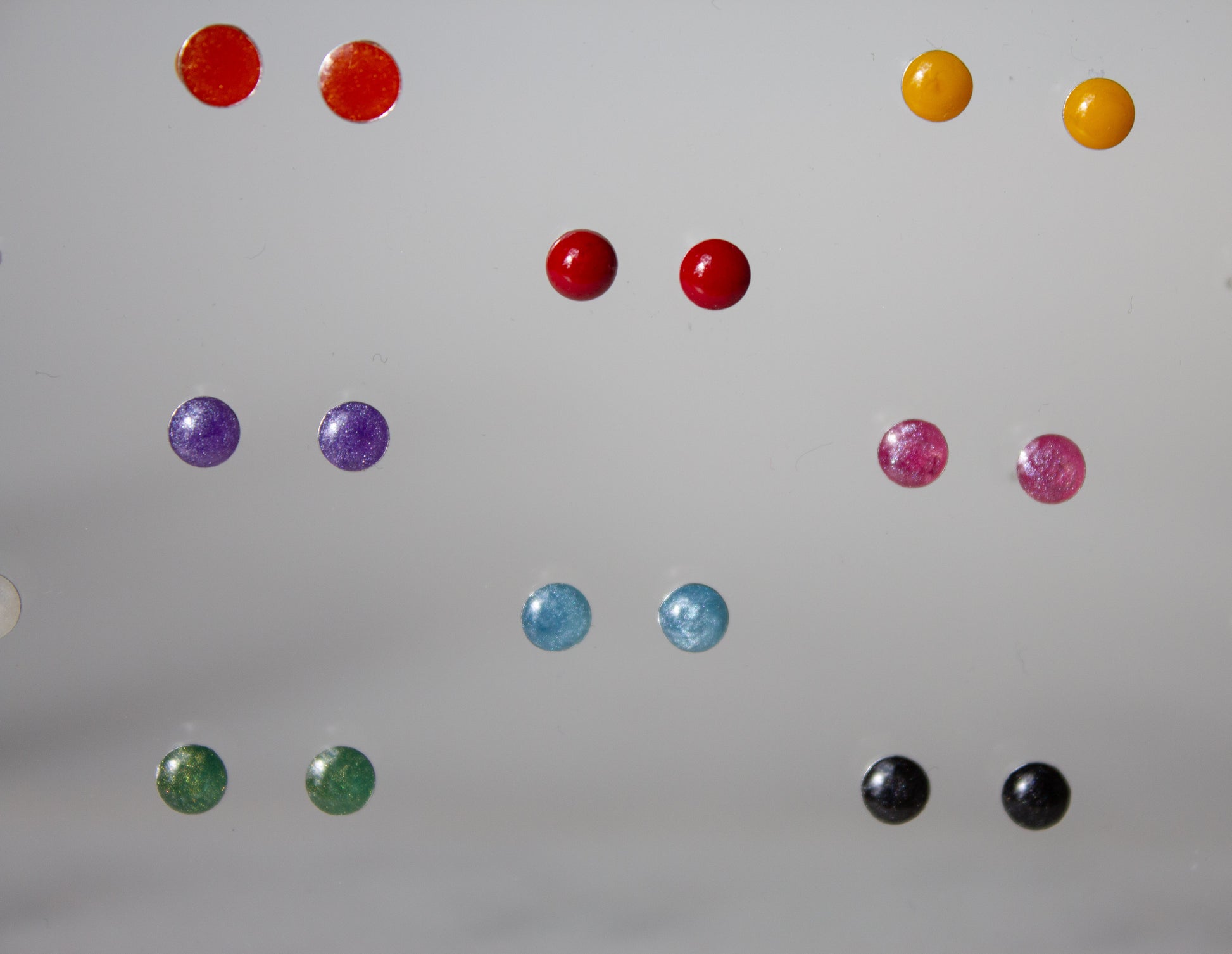 These earrings are 0.4 cms in diameter. They are made of a sterling silver dome filled with 1 of a choice of 19 colours.